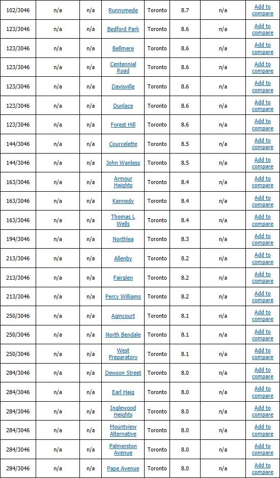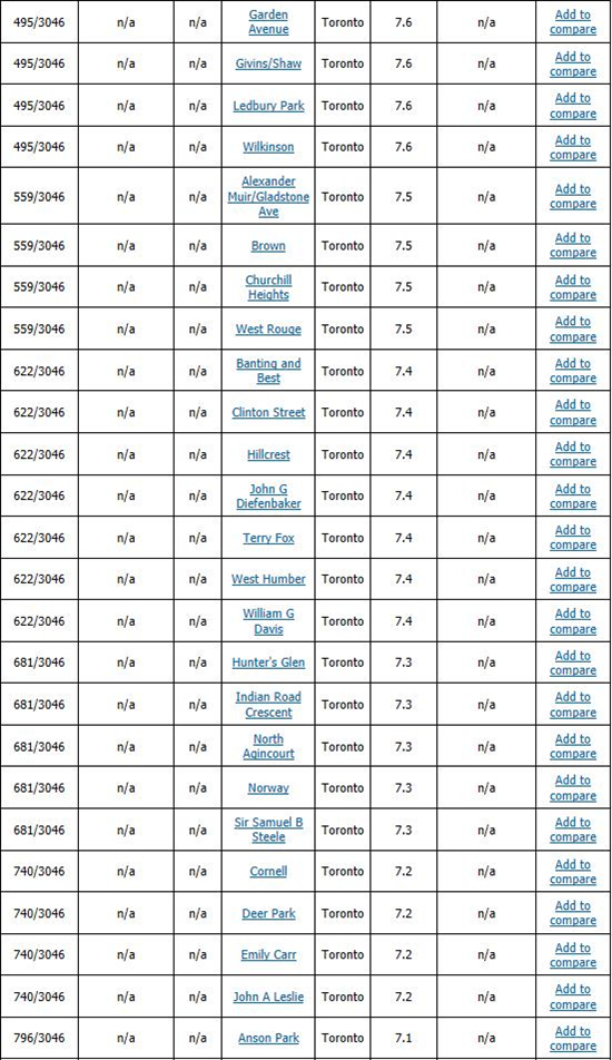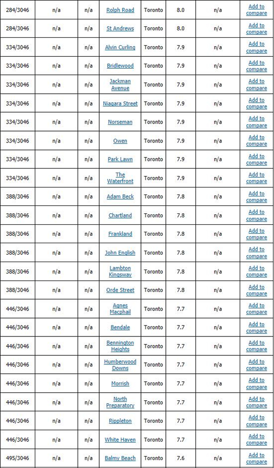 多伦多顶级女子私校 Havergal College 今年第一次参加排名,不出所料获得满分10分。而华人热衷的老牌名校:Seneca Hill P.S;Hollywood P.S由于今年没有G6,因此没有参加此次排名。