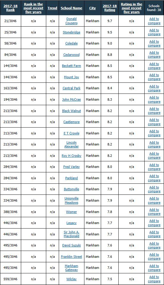 约克教育局YRDSB – 万锦Markham排名在前1000名的小学