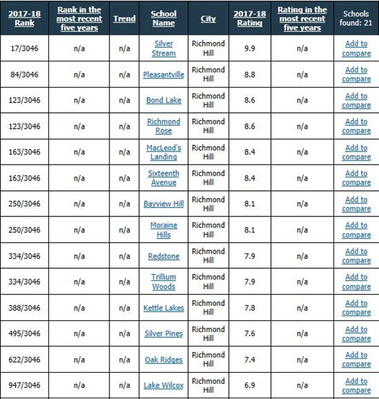 约克教育局YRDSB – 列治文山Richmond Hill前1000名的小学