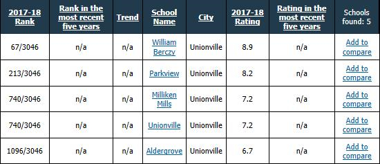 约克教育局YRDSB – 於人村Unionville 排名在前1000名的小学