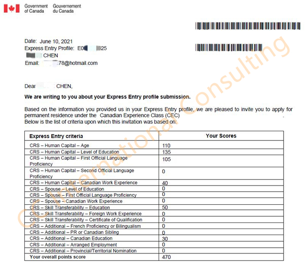 申请人委托我们时是想走安省硕士移民项目,后来也有机会申请5月6日开放的境内留学生新政,但因申请人条件太好了,在我们的劝说下最终还是等工作满一年时入池走CEC项目。