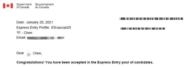 提交EE申请时26岁,单身申请,雅思成绩:听力6.5,阅读7.0,写作6.0,口语6.0。