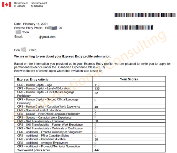 申请人入池后还在准备再考雅思以提升EE分数,然后就赶上了加拿大“2.13大赦邀请CEC”。