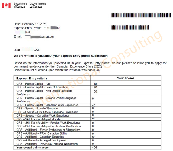 申请人入池时426分,之后积极备考语言准备提升分数,后来就赶上加拿大“213大赦邀请CEC”。