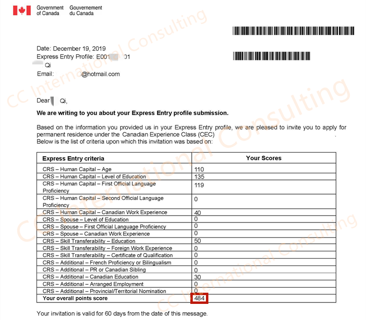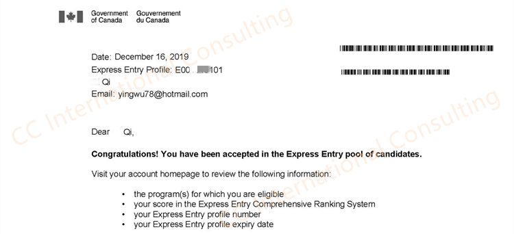 2019.12.19 入池的第3天,收到联邦EE移民邀请: