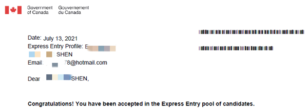 申请人移民路程有些周折,委托我们的时候自己已经入了EE池子,因为分数太低所以打算让我们代理申请5月6日新政,但因为移民材料的问题最终未能赶上5月6日的申请。