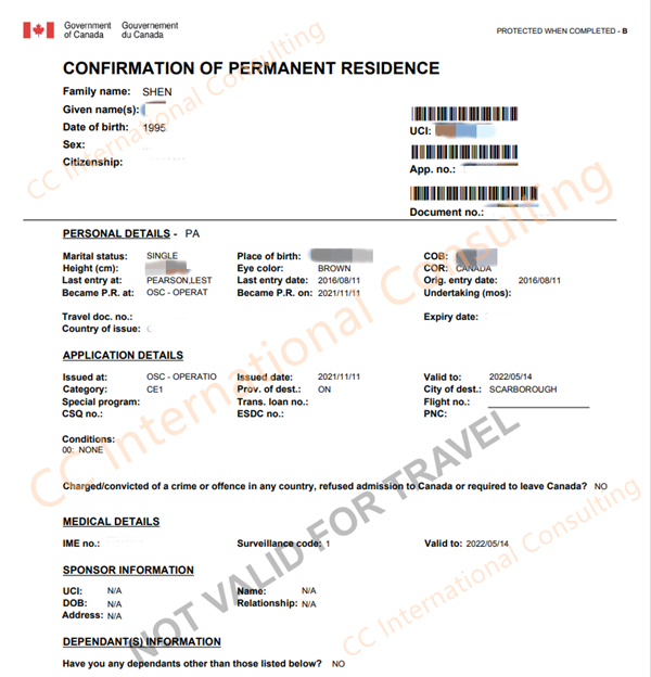 2021.11.11 移民获批,收到eCoPR: