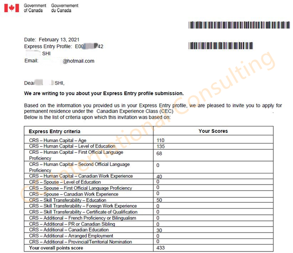 申请人原本是委托我们代理安省硕士移民项目的,后来条件满足了CEC的要求,我们就将学生放进池子中,同时等待安省硕士项目的开放,结果就赶上加拿大“213大赦邀请CEC”。