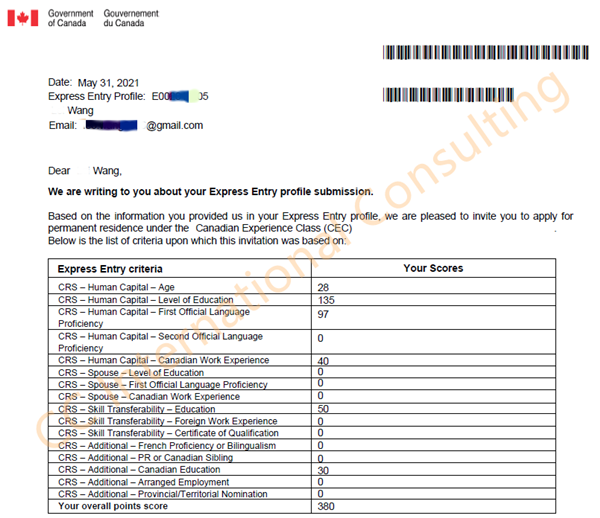 首次获得移民邀请后,我们和申请人有条不紊地准备需要递交的移民文件,仅把国内工作证明材料部分放到最后。5月31日,联邦第190轮EE邀请,分数为380分,申请人再次获得邀请,无需提交国内的工作证明材料。