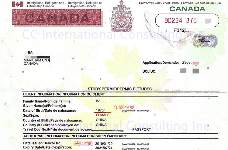 申请人递交学签申请时43岁,已婚,国内本科学位,多年管理工作经验,雅思水平6.0。