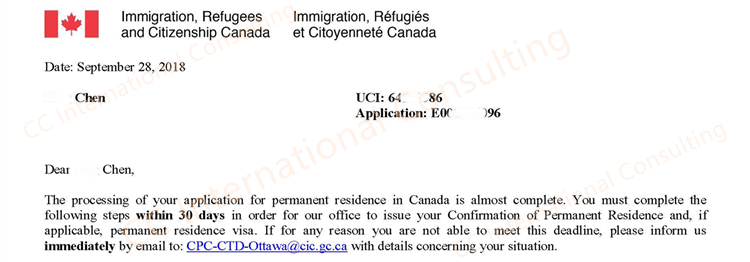 2018.09.28 移民申请获批,通知寄护照贴签:
