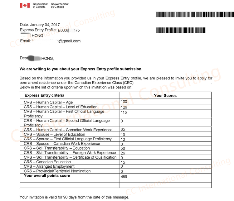 联邦入池分数489分,从入池到获得EE移民邀请间隔15个小时,移民审批过程顺畅,递交移民申请到审批通过通知贴签计3个半月。
