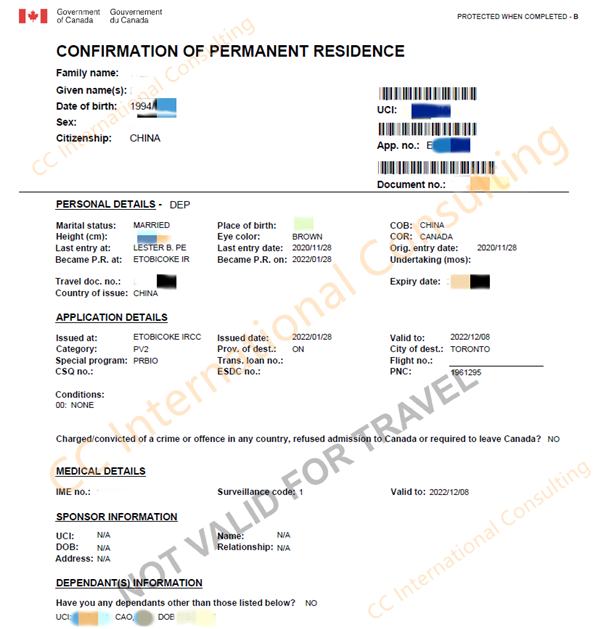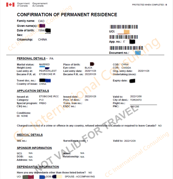 2021.11.17 补交配偶信息及相关材料(此时仍未随同移民)。