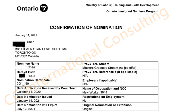 于2020年9月29日安省硕士移民改为EOI制申请之前的最后一次抢名额申请方式中抢到名额。