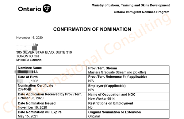 于2020年9月29日安省硕士移民改为EOI制申请之前的最后一次抢名额申请方式中抢到名额!