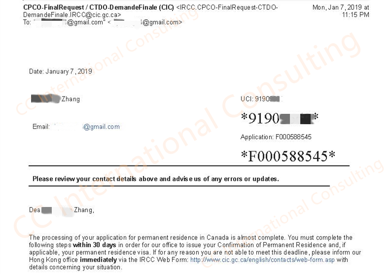 2011年8月成为加拿大永久居民PR,家庭人口2人,担保人数2人,全职工作。