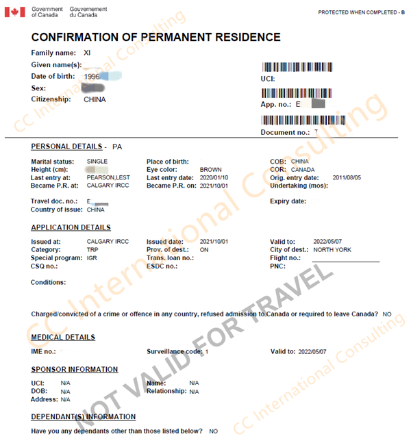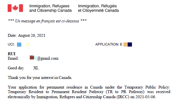 2021.10.01 移民获批,收到eCoPR: