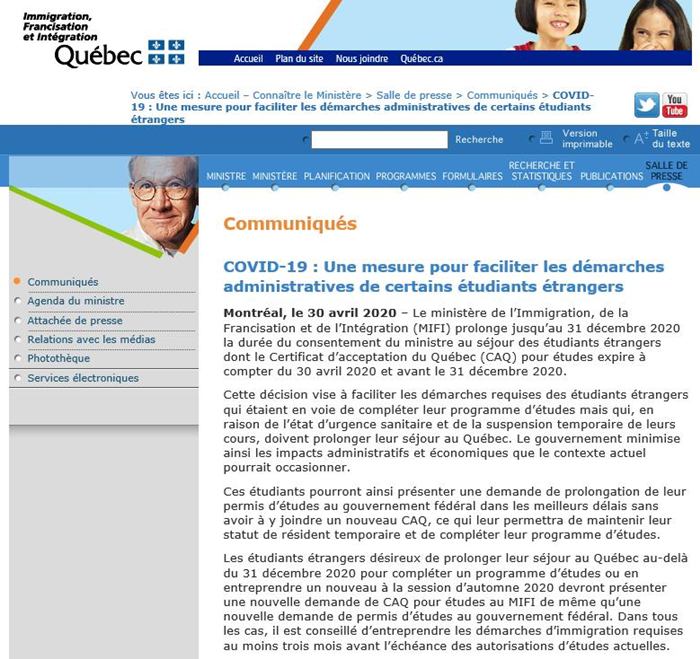 受疫情影响,魁省移民局今日决定自动延期CAQ的有效期!
