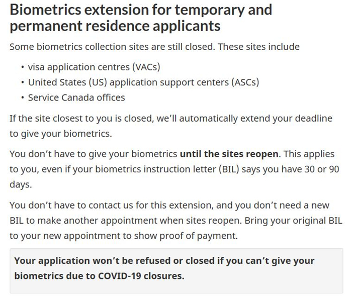 指纹采集通知无限期延长不必申请更新Published by ccic on 2020-05-212020-05-21受COVID-19病毒的影响,加拿大签证中心、美国申请中心、加拿大服务办公室均有关闭。 各类签证申请人手中的指纹采集通知函不再受30天或90天有效期的限制,自动延续到以上机构开放时使用,不必再向移民部申请更新。 Views: 1,834 Categories: 最新移民动态