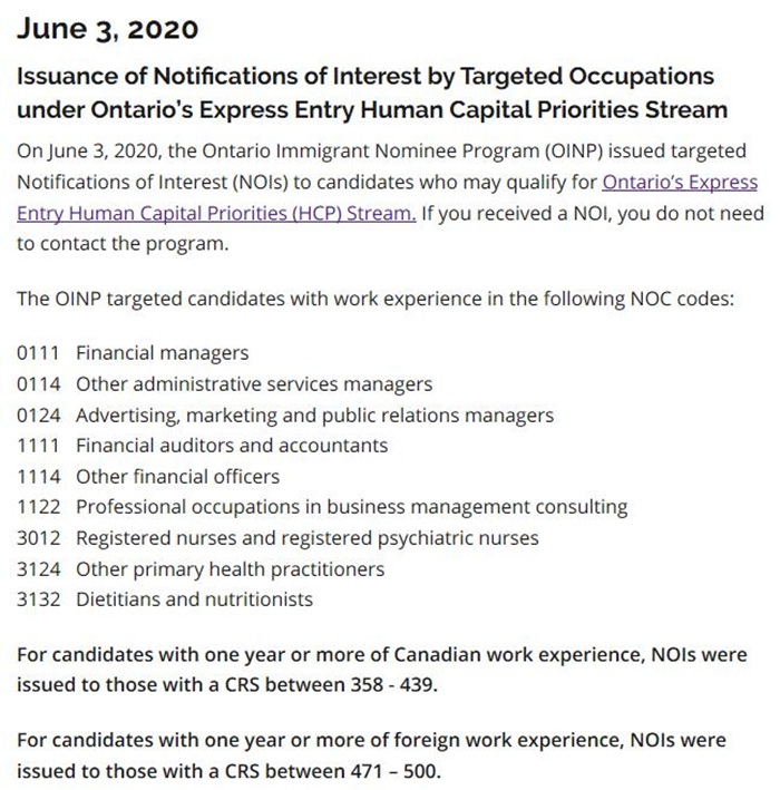 • 2020.06.03 安省优才类别定向职业移民邀请167人/532人,分数线358分/471分
