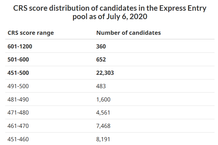 根据7月6日EE池中候选人的分数情况,本次仅将478分以上的3900人选走,如果两周后仍然为不分移民类别选人,那么分数仍将在470分以上。并且雅思考点已经陆续开放,靠刷雅思提高EE评分的候选人会越来越多,池中的分数区间也将逐步上移。如果疫情不发生二次爆发促使加拿大再次关闭国境的话,EE的低分邀请暂时不会出现。