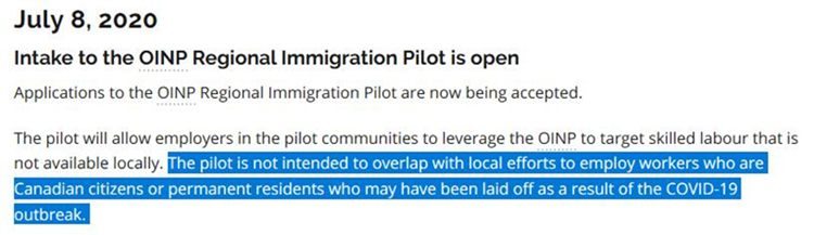 7月8日,安省发布公告,新的安省省提名项目:区域移民试点计划开始接受申请。安省明确:该移民试点项目不能够与因为疫情原因而被解雇的公民或永久居民的职位相重合!(必须优先雇用本地人)