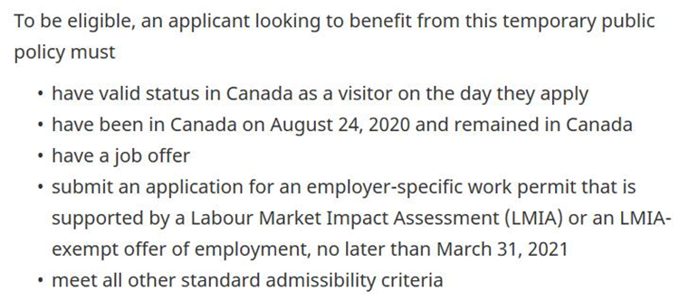 - 8月24日或之前在加拿大境内(如果8月24日之后离开加拿大,就不再符合该政策的申请条件)