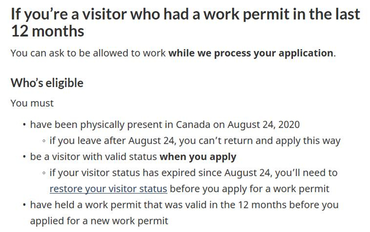 - 8月24日之前在加拿大境内有合法的访客身份 Visitor