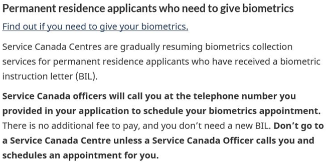 9月15日,加拿大移民局官网更新了境内永久居民申请人指纹采集的政策。