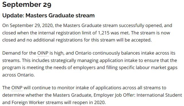 但由于安省省提名的EOI系统投入使用需要8-10个月,所以在此之前仍会延用旧的方式来申请,今天的这次硕士移民开放即是如此。并且不排除在明年9月份之前仍会以抢名额方式开放安省硕士移民项目和安省雇主担保移民项目的两个类别。