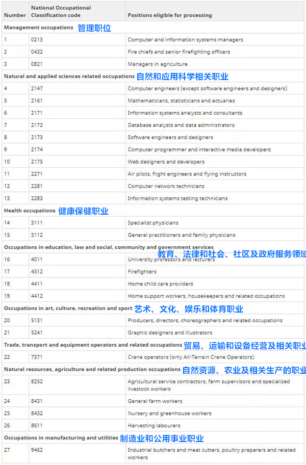 - 阿尔伯塔省的大部分职位(除非这些职位被列为阿省拒绝处理的豁免职业,或申请以其他方式得到豁免)