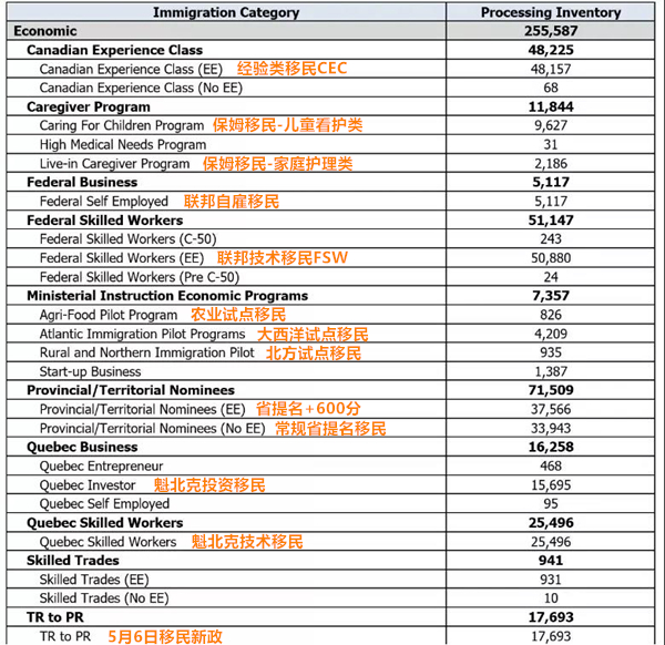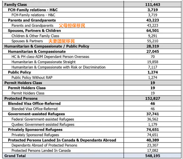 • 永久居民申请 548,000份,包括经济类、家庭团聚类及难民类;