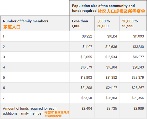2. 除已经入职的申请人,需要提供家庭生活资金证明,资金要求如下: