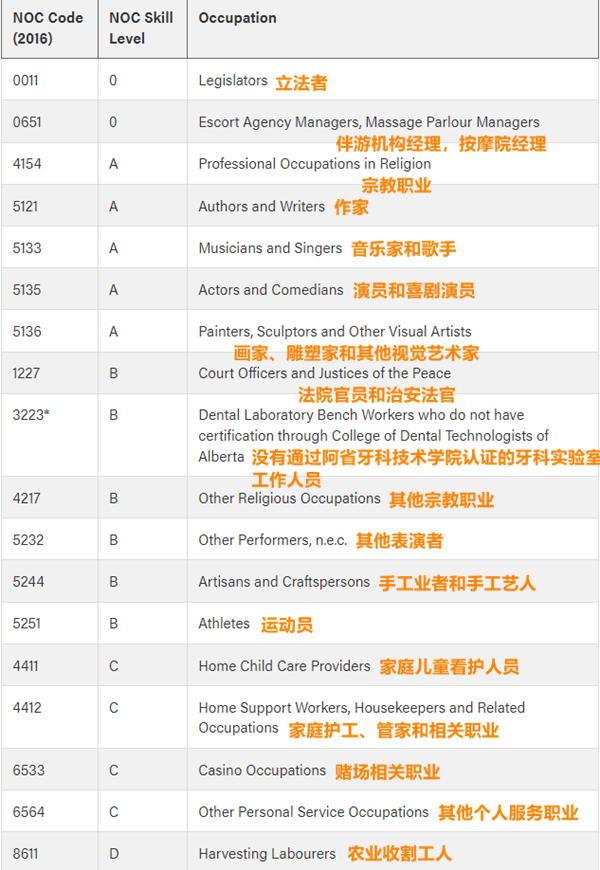 • 指定社区的工作职位为NOC 0,需要具备NOC 0A 的工作经验