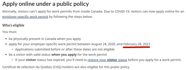 加拿大再次延长允许Visitor在境内申请封闭工签政策的截止期限: